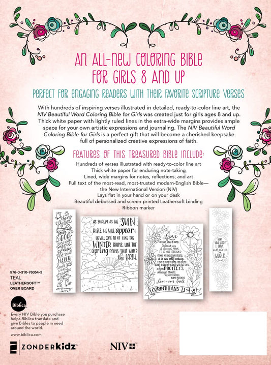 NIV Bible Beautiful Word Colouring for Girls Teal Im/Lth