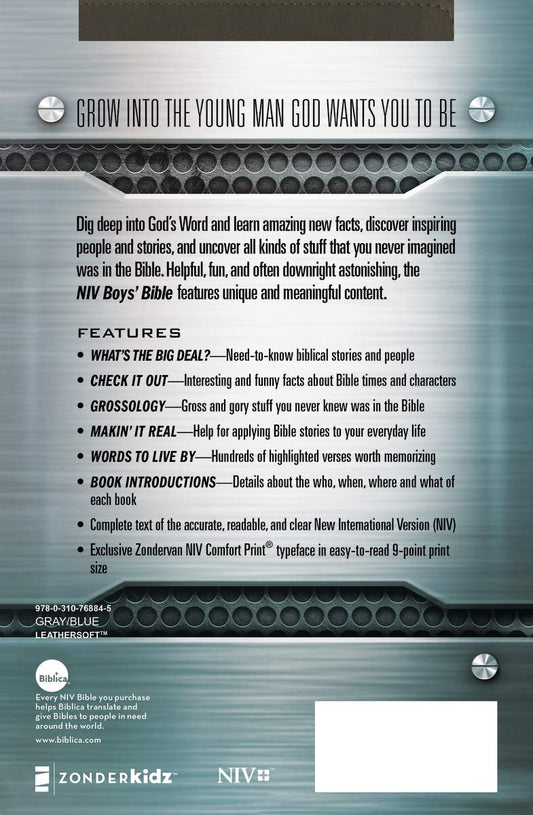 Sold outNIV Boys Bible Gray/Blue Im/Lth