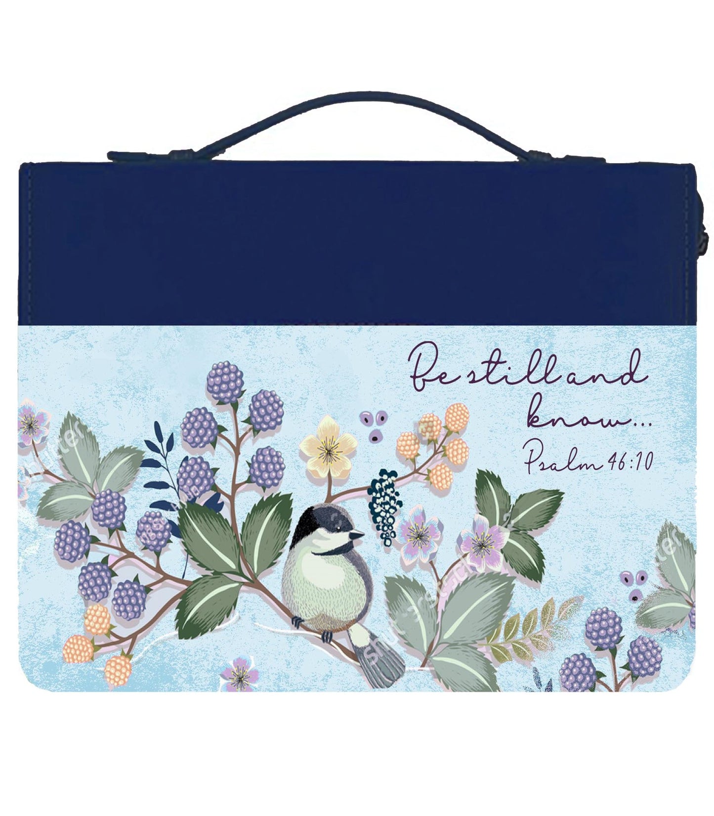 Bible Cover Blue Twotone Floral - Be Still and Know (XL)