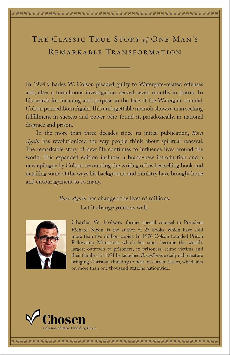 This expanded edition includes a new introduction and epilogue by Colson, recounting the writing of his bestselling book and detailing how his ministry has brought hope and encouragement to so many.