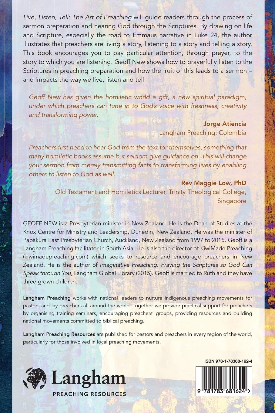 Live, Listen, Tell: The Art of Preaching will guide readers through the process of sermon preparation and hearing God through the Scriptures. By drawing on life and Scripture, especially the road to Emmaus narrative in Luke 24, the author illustrates that preachers are living a story, listening to a story and telling a story. This book encourages you to pay particular attention, through prayer, to the story to which you are listening. Geoff New shows how to prayerfully listen to the Scriptures in preaching preparation and how the fruit of this leads to a sermon - and impacts the way we live, listen and tell.