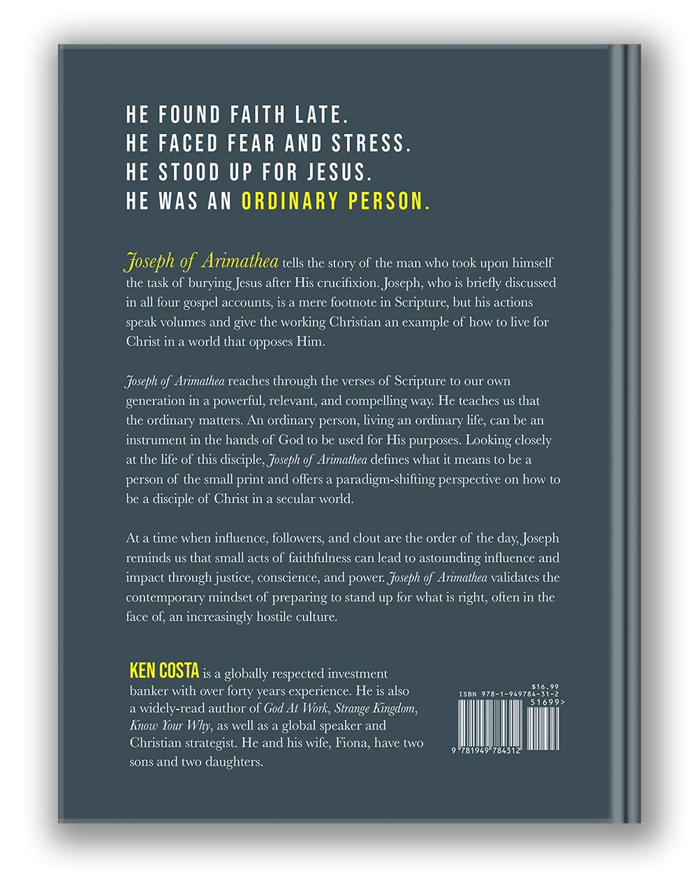At a time when influence, followers, and clout are the order of the day, Joseph reminds us that small acts of faithfulness can lead to astounding influence and impact through justice, conscience, and power. Joseph of Arimathea validates the contemporary mindset of preparing to stand up for what is right, often in the face of, an increasingly hostile culture.